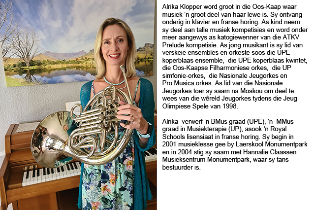 • Praktiese en teoretiese musiekonderrig vir kinders vanaf 8 jaar